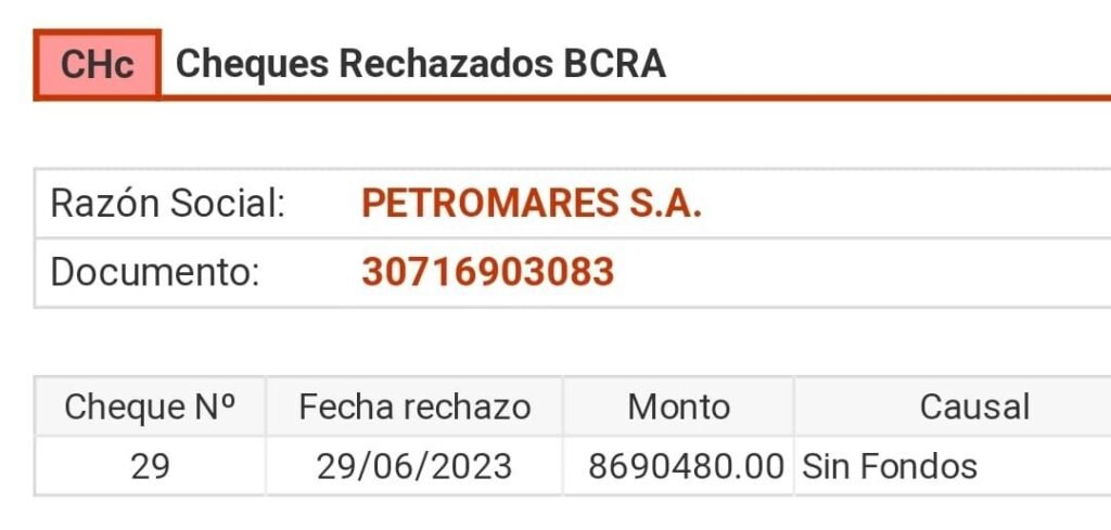 Ahora, mientras despilfarra millones y millones en campaña para quedarse con la gobernación en Chubut, el Banco Central de la República Argentina rebotó un cheque de Petromares por un monto aproximado a los 9 millones ($8.690.480 para ser exactos). ¿El motivo del cheque rebotado? No tiene fondos.