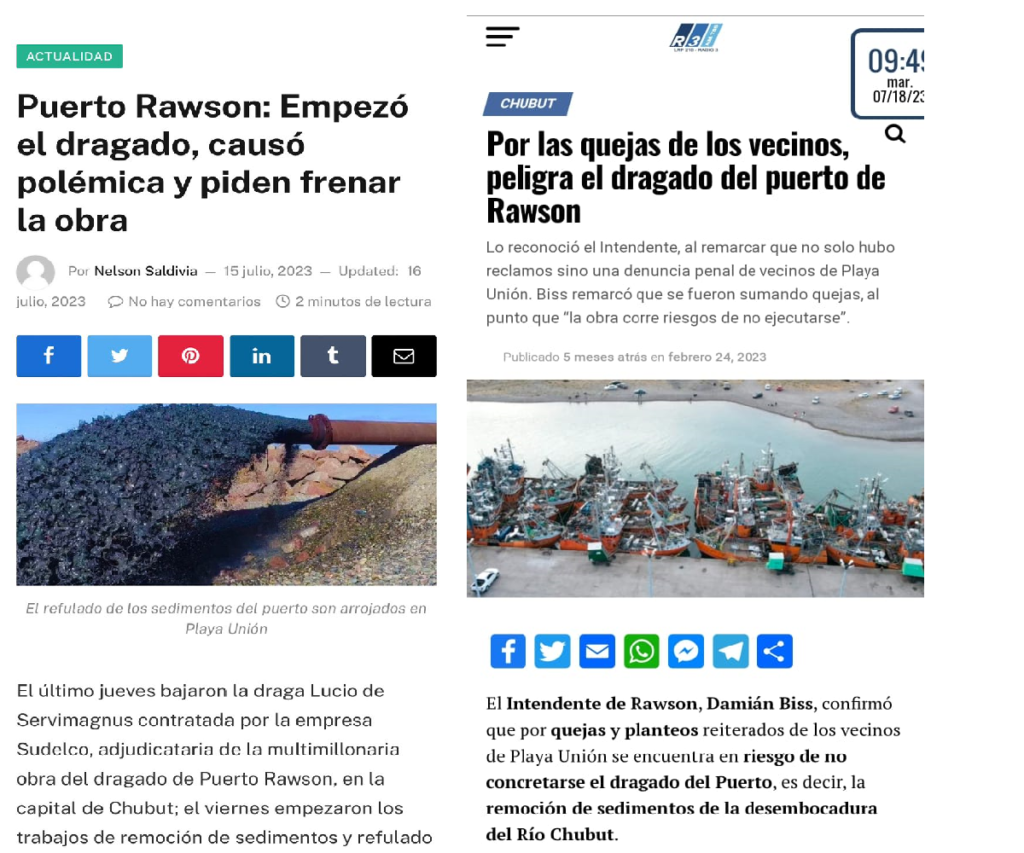 El fin de semana se puso en funcionamiento la tan anunciada obra del intendente, y apenas 24 horas después de sucedido eso, fue el mismo intendente el que presentó un amparo en la Justicia para frenar el dragado de sedimentos sin tratamiento del Río Chubut, que están siendo directamente arrojados al mar.