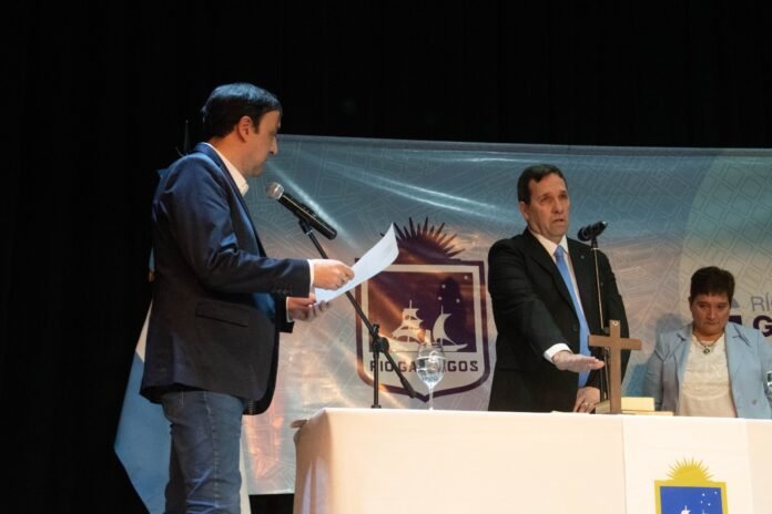 Este lunes el intendente Pablo Grasso puso en funciones a tres nuevos secretarios en el municipio de Río Gallegos. El acto fue realizado en el teatro Héctor Marinero, contando con la presencia de un fuerte acompañamiento de la dirigencia y la militancia del jefe comunal. Allí juraron Alan Bjerring como secretario de Gobierno, Mónica Gutiérrez en la Secretaría de Desarrollo Comunitario y Silvina Juárez en la cartera deportiva de la Municipalidad.